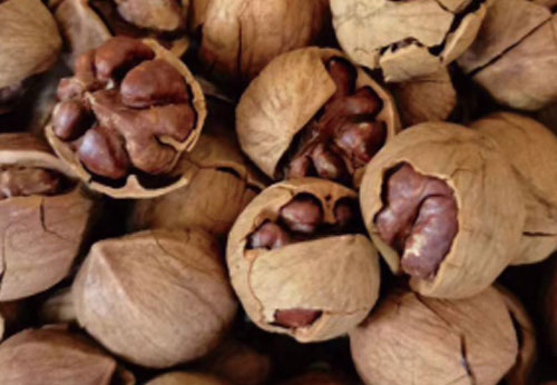 根果仁,山核桃中的一种,形状多样,可作为点心食用,原产地美国、墨西哥。