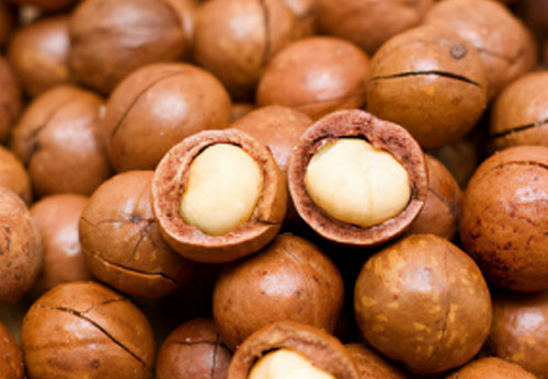 夏威夷果,原名澳洲坚果,是一种原产于澳大利亚的树生坚果。它属于常绿乔木,双子叶植物,树冠高大,叶子3~4片轮生,披针形、革质,光滑,边缘有刺状锯齿。夏威夷果的花米黄色,果圆球形,果皮革质,内果皮坚硬,
